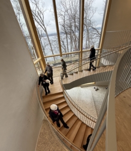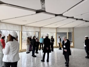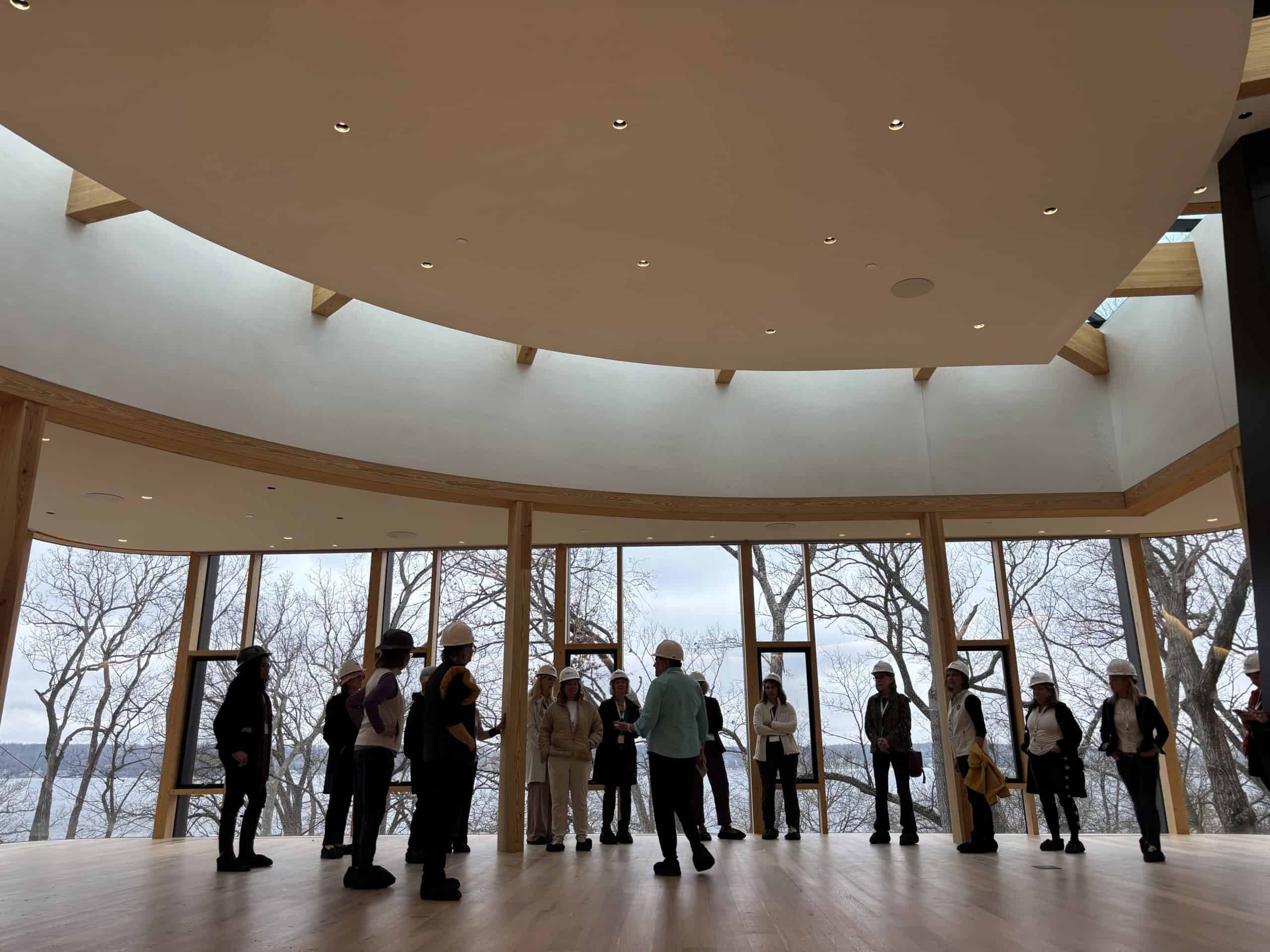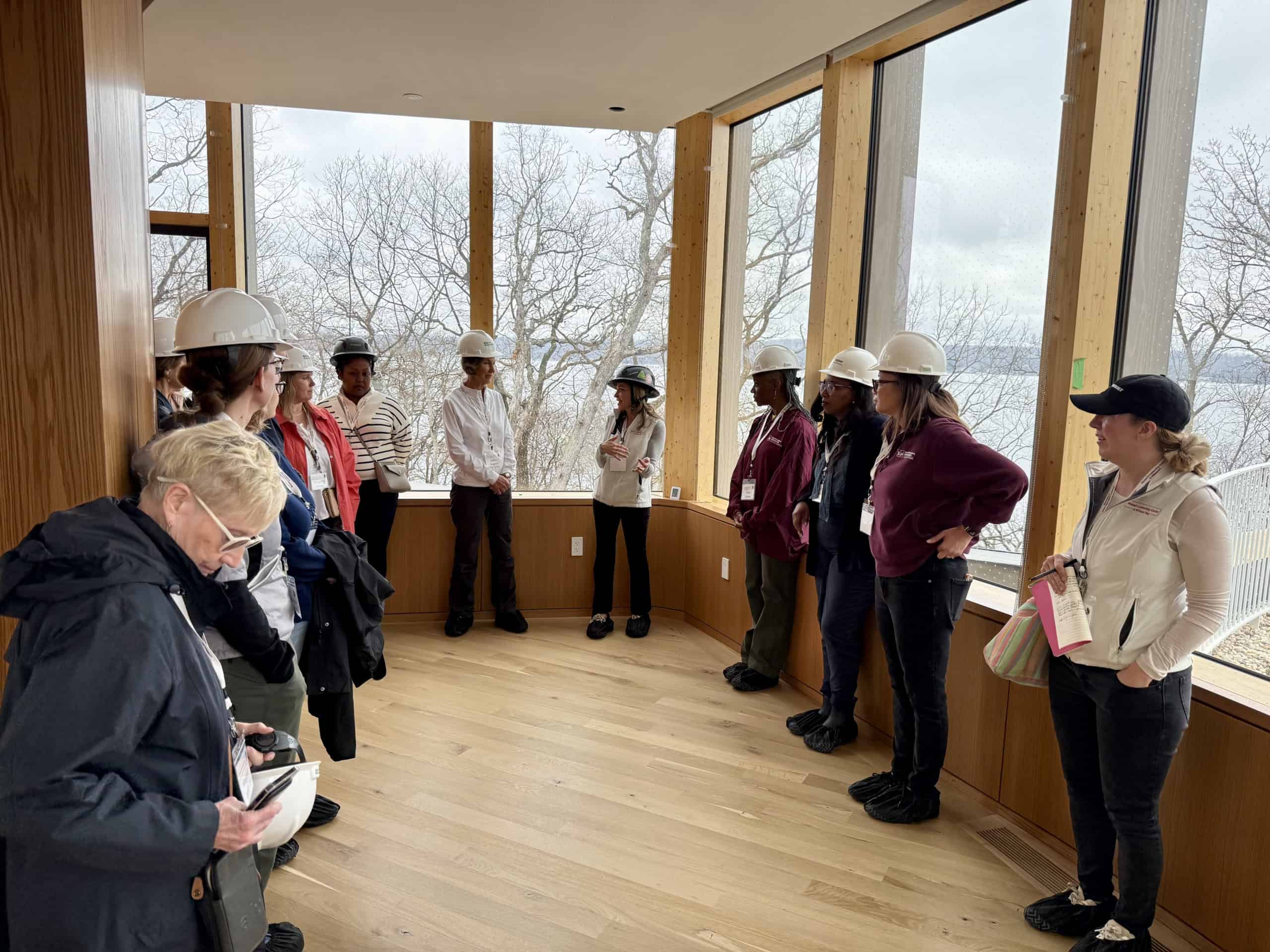 As part of their visit, the women watched a documentary on the creation of the Center and heard Ms. Drake explain how and why she was inspired to bring it into existence. They also toured the Campus buildings inside and out, learning about the unique materials, design process, and architectural motifs that characterize each structure. The Center was designed by award-winning architect and MacArthur Fellow Jeanne Gang and the creative team at her firm, Studio Gang.